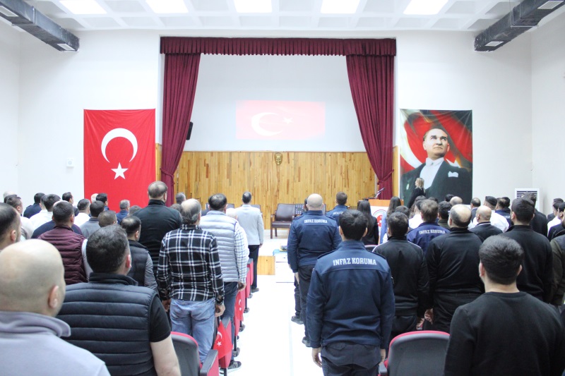 Konferans salonunda düzenlenen program saygı duruşu ve İstiklal Marşı’nın okunmasıyla başladı. Kurum hükümlümüzün Kur’an-ı Kerim tilavetinin ardından, Çanakkale Zaferi’nin 111.yıldönümüne istinaden Kurum İdare Memurumuz Sayın Kaan Uluç UÇAR, günün anlam ve önemini belirten bir konuşma yaptı.