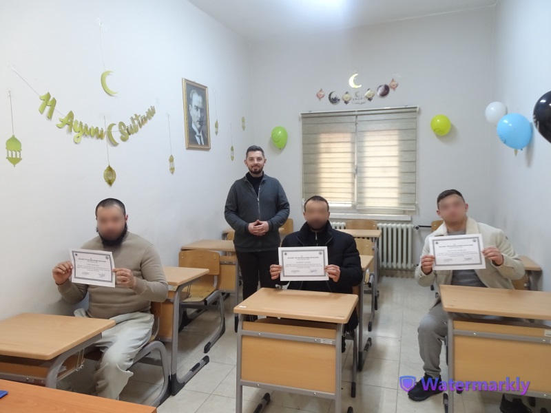 Eğitim servisi ve manevi rehberlik servisi iş birliğiyle Kur’an-ı Kerim kursuna katılan hükümlü/tutuklularca Ramazan Ayının atmosferini yansıtacak şekilde derslikler süslendi ve kursu başarı ile tamamlayan katılımcılara kurs belgeleri verildi.